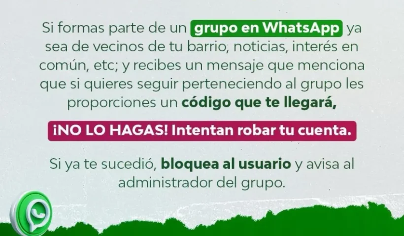 El engaño circula en grupos barriales y de interés común: piden un código “para seguir en el grupo” y, al entregarlo, los estafadores toman el…