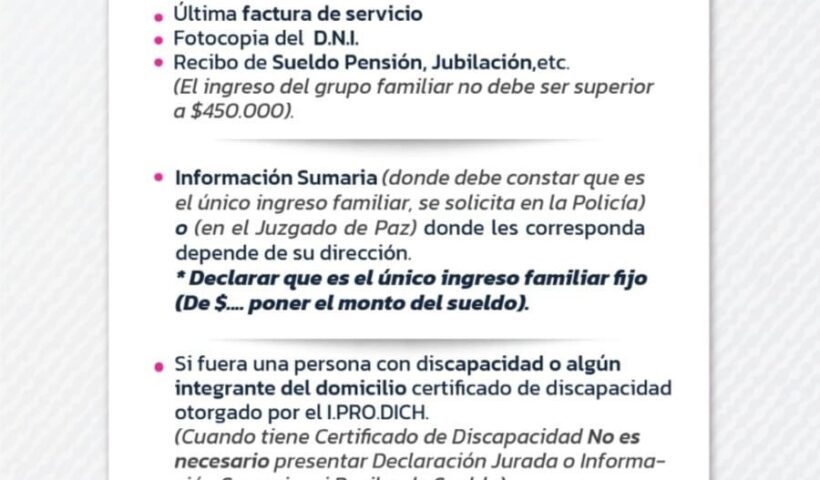 Leer mas El Ejecutivo removió al subinspector de Personas Jurídicas tras detectar incumplimientos gravesTARIFA SOCIAL DE SAMEEP: QUIÉNES PUEDEN ACCEDER Y CUÁLES SON LOS REQUISITOS