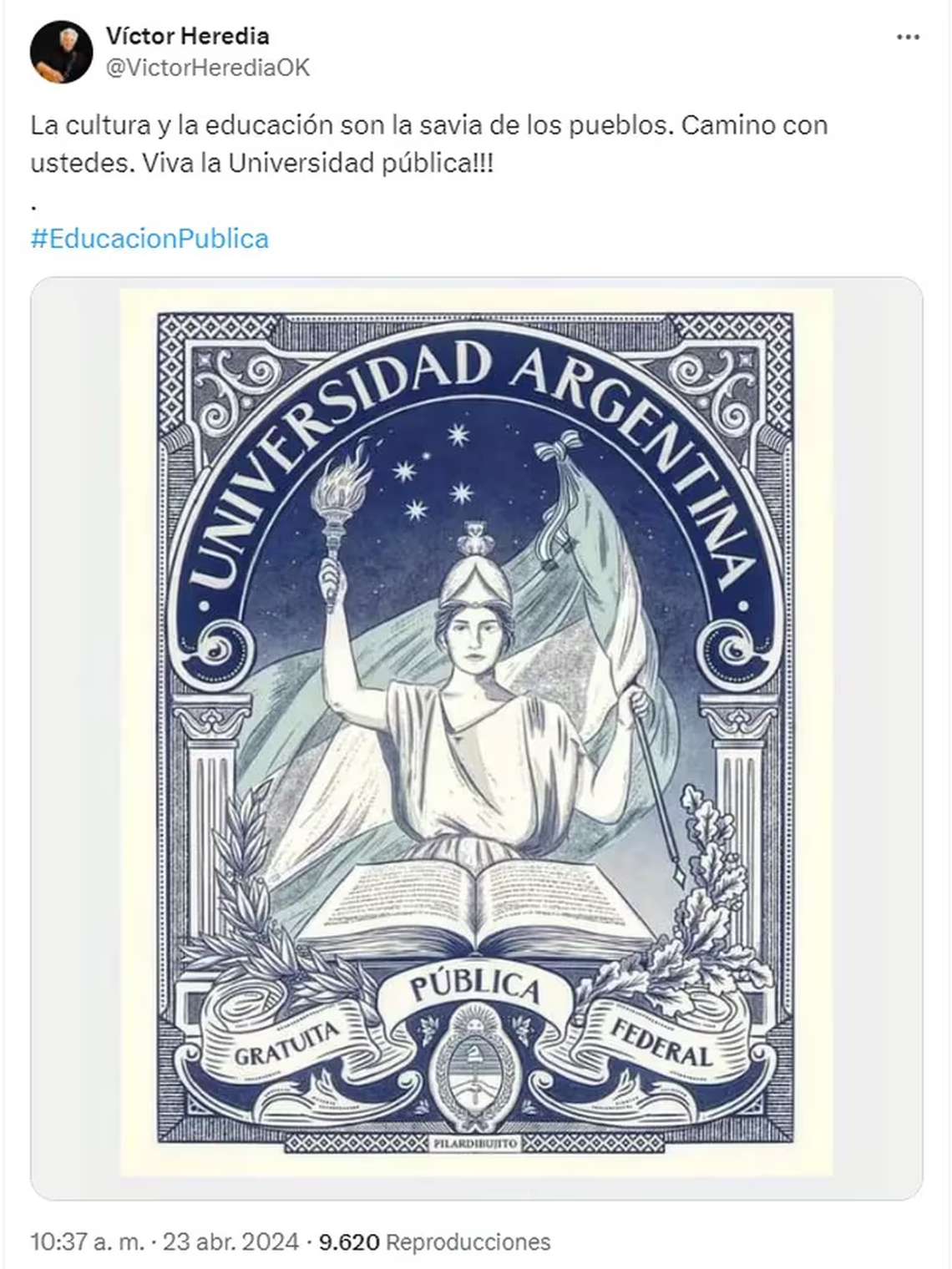 Víctor Heredia, también a favor, sostuvo: “La cultura y la educación son la savia de los pueblos. Camino con ustedes. Viva la Universidad pública”.