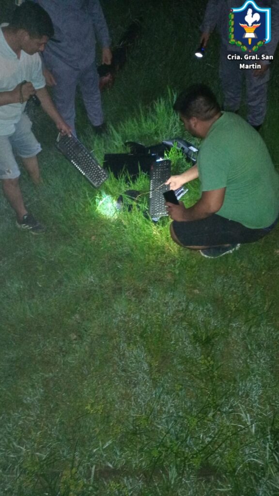 Cerca de las 3, los agentes fueron advertidos sobre la presencia de dos hombres que habían ingresado al establecimiento, ubicado en la intersección de las calles Lavalle y Maipú. Al dirigirse al lugar, lograron divisar a los presuntos infractores, quienes, al notar la presencia policial, se dieron a la fuga y se perdieron de vista, arrojando varios elementos al monte.