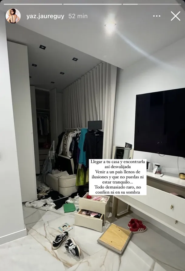 La pareja del exfutbolista de Boca compartió imágenes en sus historias de Instagram que mostraban el caos dejado por los delincuentes: cajones abiertos, ropa esparcida y un desorden generalizado. “Llegar a tu casa y encontrarla así, desvalijada. Venir a un país lleno de ilusiones y que no puedas estar tranquilo… Todo demasiado raro, no confíen ni en su sombra”, expresó con indignación.