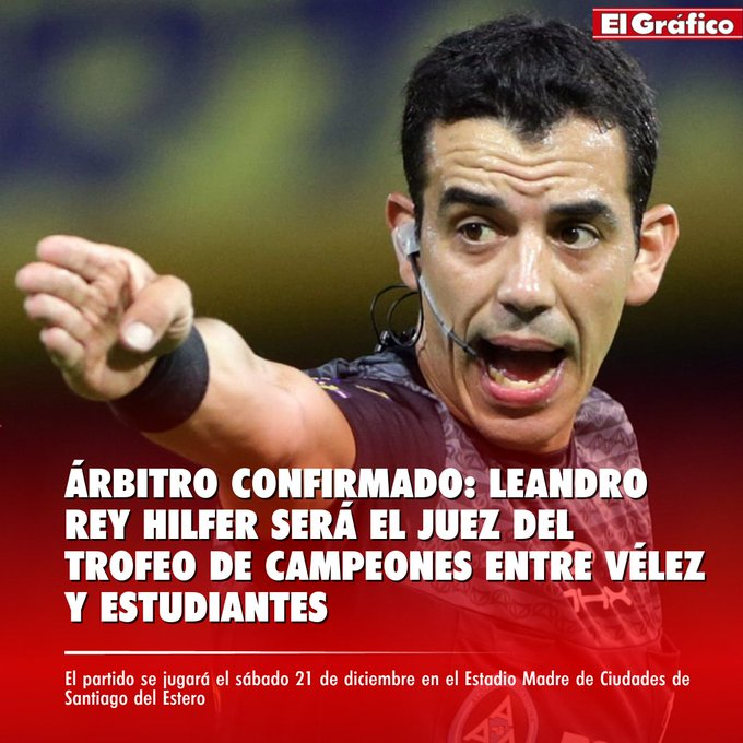 La AFA confirmó las designaciones arbitrales para el Trofeo de Campeones entre Estudiantes y Vélez, que tendrá a Leonardo Rey Hilfer como juez principal.