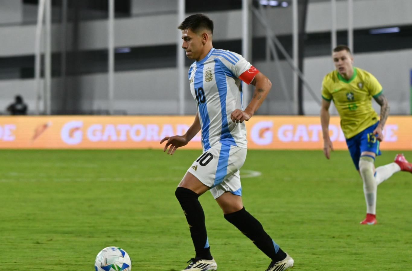CLAUDIO ECHEVERRI jugó un partidazo en la Selección Argentina ante Brasil en el Sudamericano Sub 20, picó el penal para el 1-0 y volvió a mostrar su talento, pero luego fue reemplazado y generó preocupación.