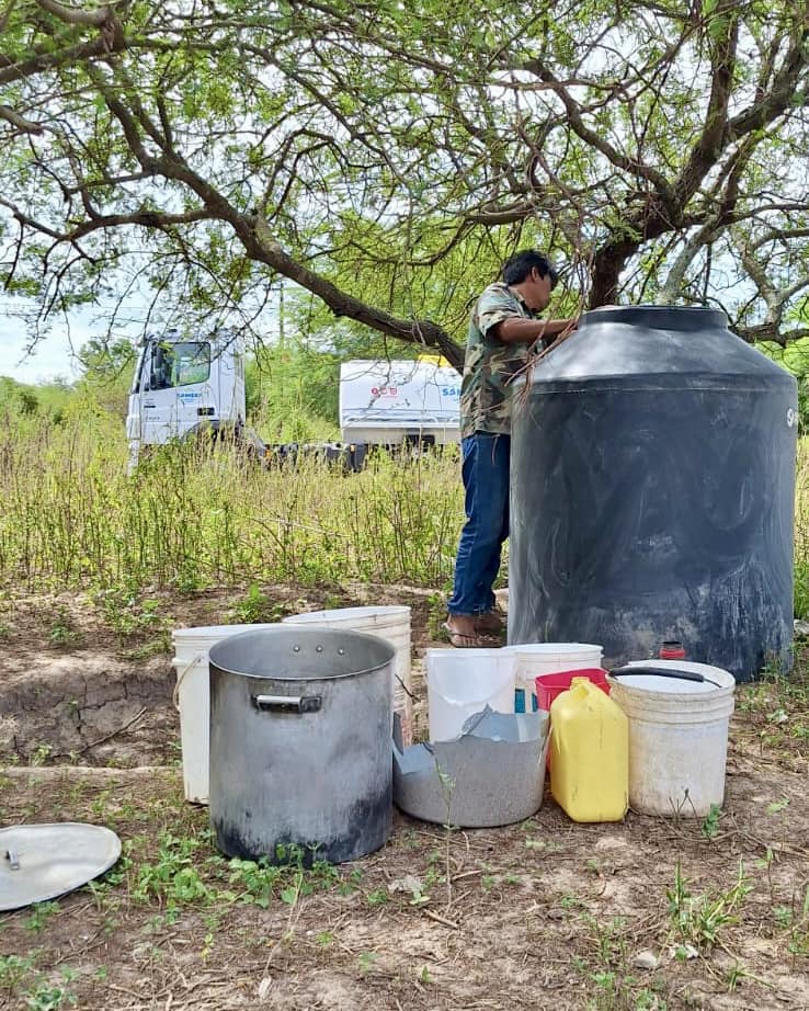Llevamos soluciones a la comunidad de 7 脕rboles con el cami贸n cisterna de SAMEEP, abasteciendo de manera urgente a colonos que necesitaban agua potable.