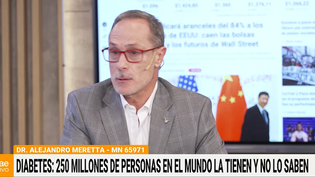 El doctor Alejandro Meretta, en su habitual columna en Infobae en Vivo, explicó que es una condición que puede pasar desapercibida y causar daños graves a los órganos vitales si no se la controla adecuadamente. El médico cardiólogo Alejandro Meretta (MN 65971), en su columna de Infobae en Vivo,explicó que la diabetes es una de las enfermedades más silenciosas y peligrosas de nuestra época. Se trata de una alteración del nivel de glucosa en sangre, donde el cuerpo no regula correctamente este azúcar vital. Al igual que otros factores de riesgo como el colesterol y la hipertensión, no presenta síntomas evidentes en sus primeras etapas, lo que dificulta su diagnóstico temprano. Ante eso, la clave es el control periódico y detalló cuánto debe medir la glucosa en sangre para ser considerada “prediabetes” o “diabetes. En condiciones normales —dijo en Infobae en Vivo en su edición de la mañana, con la conducción de Gonzalo Sánchez, Carolina Amoroso, Ramón Indart y Cecilia Boufflet—, las células utilizan la glucosa como fuente de energía, pero cuando los niveles de glucosa exceden lo normal, el organismo comienza a sufrir inflamación y daño. “El azúcar es el combustible que necesita nuestro cuerpo, pero un exceso de glucosa provoca inflamación y daña los pequeños vasos sanguíneos, lo que termina afectando a órganos vitales”. El doctor explicó que existen dos tipos principales de diabetes. La tipo 1, que es autoinmune y requiere insulina desde temprana edad, y la tipo 2, que es más prevalente y está directamente asociada con la obesidad. Meretta subraya que esta última afecta al 95% de los pacientes, y su desarrollo está vinculado a la incapacidad del cuerpo para utilizar adecuadamente la insulina, hormona encargada de metabolizar la glucosa. “La obesidad es un factor de riesgo importante, ya que incrementa la inflamación de las células adiposas, lo que dificulta el funcionamiento adecuado de la insulina”, detalló. Aunque la diabetes tipo 2 es más común en personas mayores de 30 años, su prevalencia ha aumentado considerablemente en personas más jóvenes debido a los malos hábitos alimenticios y el sedentarismo.