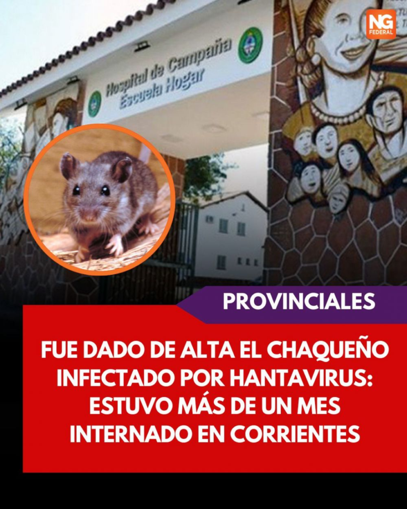 El pasado miércoles fue dado de alta el paciente chaqueño que había sido diagnosticado con Hantavirus y permaneció más de un mes internado en el hospital de Campaña “Escuela Hogar” de Corrientes. El hombre, que vive en la zona rural de Río Muerto, había tenido contacto con un familiar que falleció días antes en Resistencia por la misma enfermedad. Fue internado en estado crítico el 3 de marzo e ingresó directamente a la Unidad de Terapia Intensiva