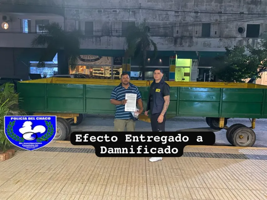 El damnificado reconoció el acoplado como de su propiedad. Por orden de la Fiscalía de Investigación Penal N° 3, el detenido fue notificado de su aprehensión por la causa caratulada como “Supuesto delito de Estafa”, y el vehículo fue restituido al denunciante.