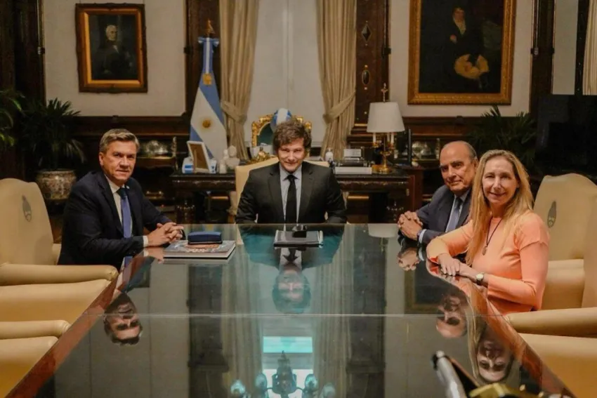 El gobernador estuvo reunido con el presidente, Karina Milei y Guillermo Francos.