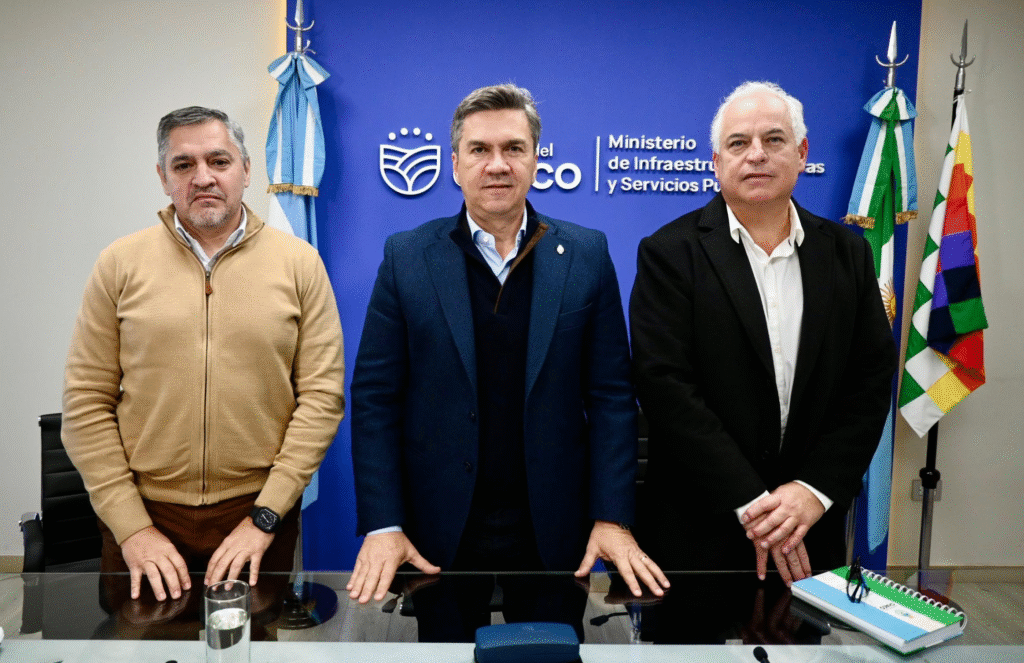 Desde la oficina de Obras Públicas, mediante videoconferencia desde Buenos Aires, participaron el subsecretario de Coordinación de Gabinete Económico de la provincia Guillermo Agüero y el presidente de Sameep Nicolás Diez, junto al secretario de Obras Públicas de Nación Luis Giovine y el subsecretario de Recursos Hídricos de la Secretaria de Recursos Hídricos de la Nación Bartolomé Heredia.