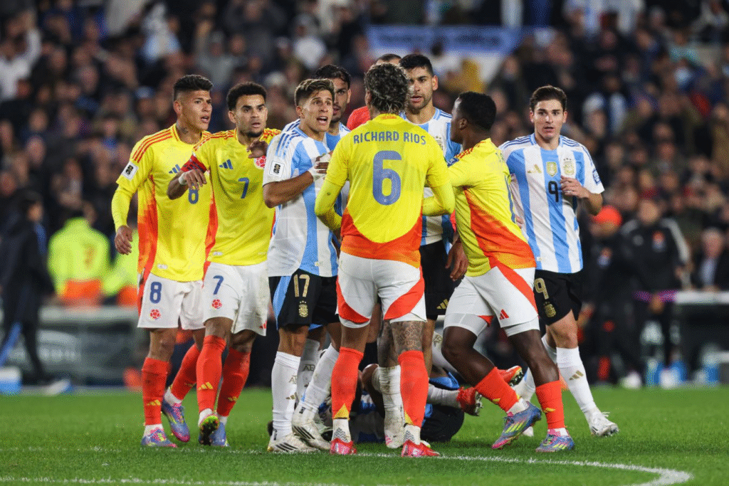 El partido terminó con clima caliente en el Monumental, como los últimos Argentina-Colombia marcaron.