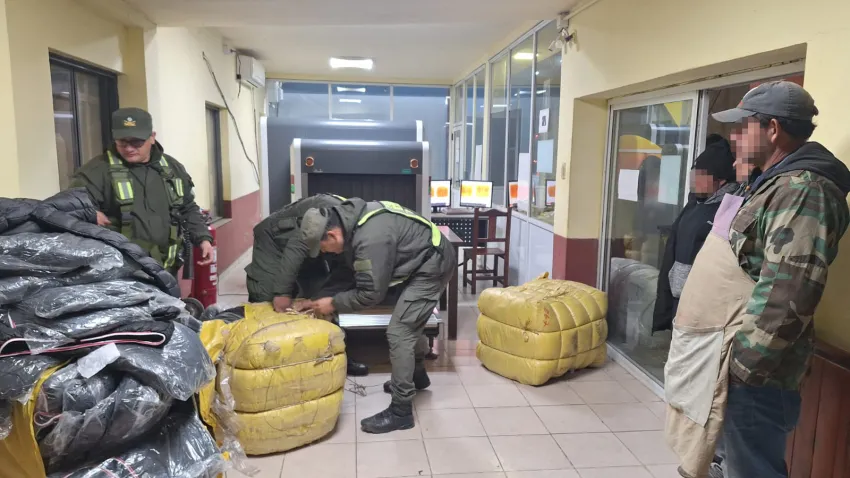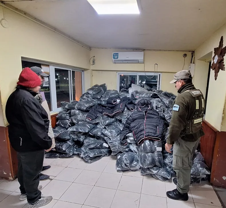 Los gendarmes lograron identificar más de 700 camperas de diferentes marcas y modelos, acondicionadas en bolsas arpilleras de grandes dimensiones en la bodega del ómnibus.