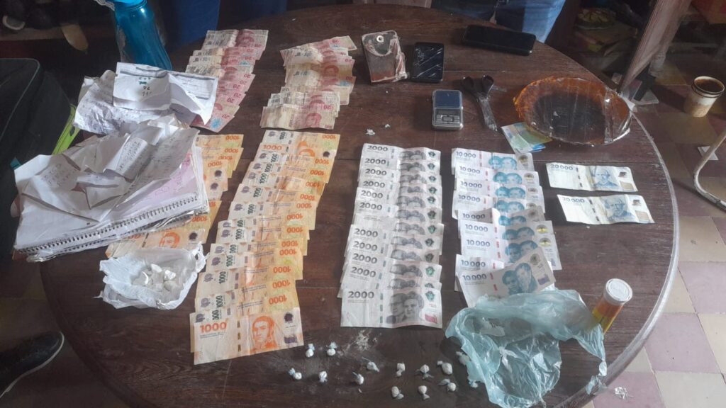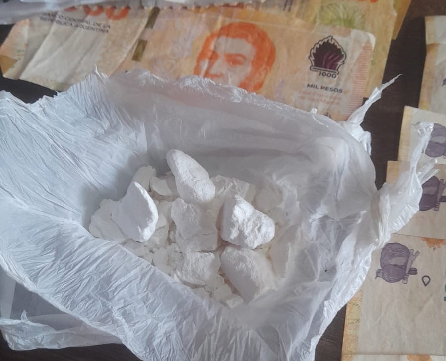 Durante el procedimiento, un hombre intentó darse a la fuga por el patio trasero de la vivienda, arrojando elementos a un aljibe, pero fue rápidamente reducido por el personal. El sujeto fue identificado como de 46 años. En el lugar, la Policía halló 31 gramos de cocaína fraccionada en bochitas, más de 178 mil pesos en efectivo, balanzas de precisión, teléfonos celulares y recortes con anotaciones, lo que permitió vincular al detenido con actividades de narcomenudeo.