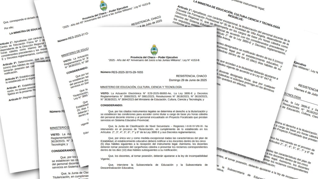 El Ministerio de Educación del Chaco en los últimos días emitió distintas resoluciones, con la firma de la ministra Sofía Naidenoff, para efectivizar la titularización de cargos docentes de los profesores de Centros de Educación Física, también de las escuelas de Educación Técnico Profesional, de Educación Permanente de Jóvenes y Adultos, y de la Familia Agrícola en cumplimiento de la aplicación del Plan de Estabilidad y Garantías Laborales -leyes 3895-E y 3896 – E-. “Estamos dando un paso importante desde el Ministerio con el apoyo y el trabajo de las Juntas de Clasificación de los niveles involucrados, así como también de la Mesa Técnica conformada por los sindicatos docentes, porque las instituciones de estas modalidades educativas ya están regularizadas. Por lo que logramos los objetivos que plantea la Ley de Estabilidad Laboral y Garantías Laborales”, manifestó la subsecretaria de Descentralización Educativa, Marta Fassano.