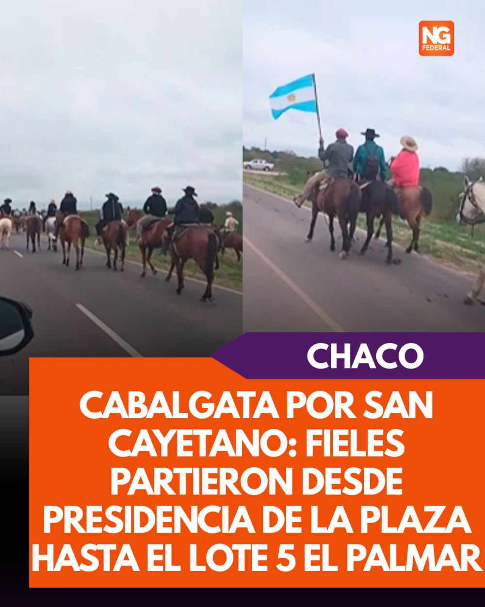 En el Día de San Cayetano, fieles participan de una cabalgata que partió desde Presidencia de la Plaza hasta el Lote 5 El Palmar, recorriendo 25 kilómetros.