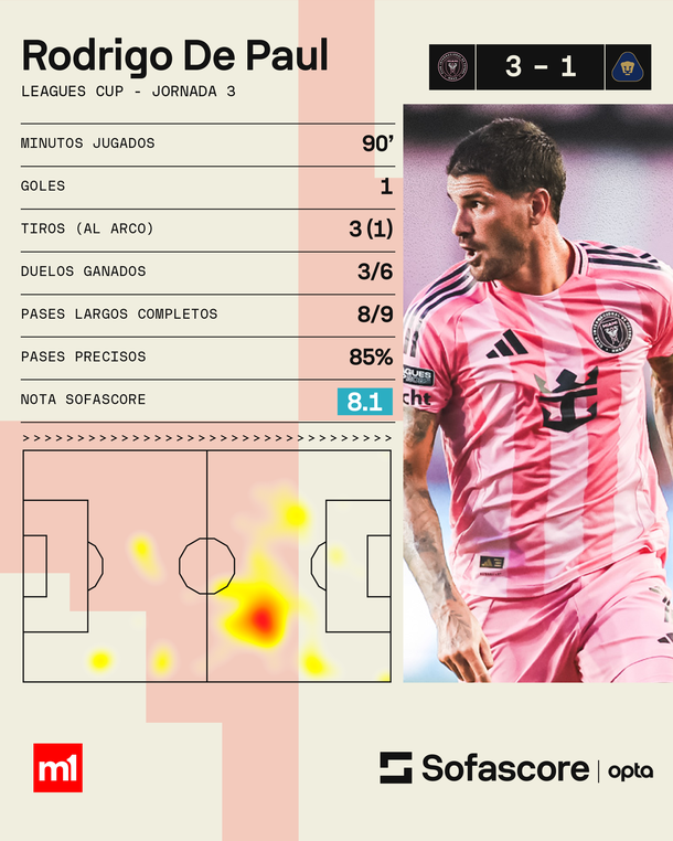 Las estadísticas de Rodrigo De Paul en la victoria del Inter Miami ante Pumas