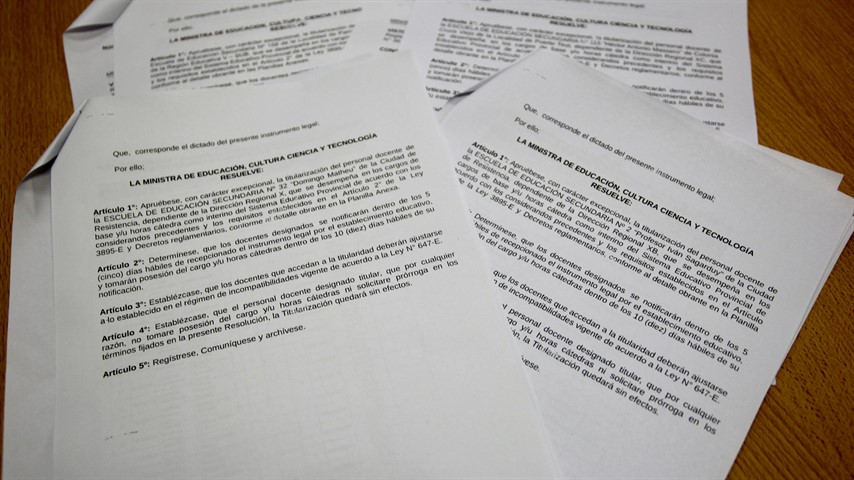 La subsecretaria de Descentralización Educativa, Marta Fassano, confirmó que la ministra Sofía Naidenoff ya firmó las primeras resoluciones, y que las mismas comenzarán a llegar a las escuelas en los próximos días, permitiendo a los docentes tomar posesión de sus cargos de forma efectiva, “después de un arduo trabajo de organización de las plantas funcionales de las escuelas de nivel secundario”.