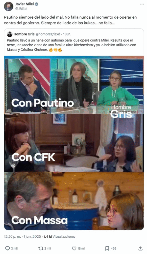 Luego de que se conociera que la Justicia falló a favor del presidente Javier Milei y resolvió que no tendrá que eliminar un mensaje publicado en su cuenta personal de la red social X contra Ian Moche, un nene de 12 años con autismo, sigue la polémica. Ahora, Andrés Gil Domínguez, el abogado de la familia del menor, cuestionó el fallo, dijo que es “contradictorio” y apuntó contra el juez federal Alberto Osvaldo Recondo .