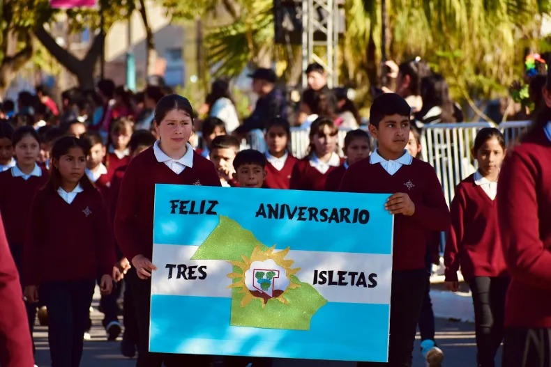 El gobernador Leandro Zdero acompañó hoy a la intendente Marcela Duarte y a la comunidad de Tres Isletas, en el 88° aniversario de la localidad, donde también entregó Títulos de Propiedad a productores rurales y, con la presencia del administrador General de la Dirección de Vialidad Provincial (DVP), Omar Canela, firmaron un convenio para ejecutar cuadras de pavimento. Tras repasar la historia de la comunidad y la superación de las adversidades de forma mancomunada, Zdero aseguró: “Estoy convencido que el camino de un trabajo conjunto, es la salida del Chaco”.