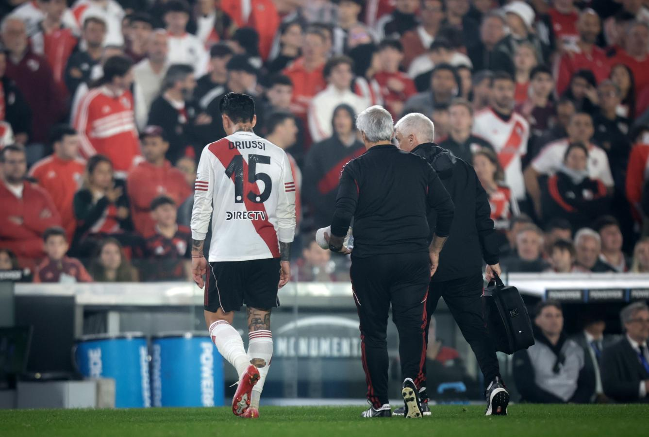 SEBASTIÁN DRIUSSIsufrió un desgarro en el bíceps femoral izquierdo y será baja en RIVER durante tres semanas. El atacante debió ser reemplazado a los 57 minutos del encuentro que River perdió con Palmeiras por la ida de los cuartos de final de la Copa Libertadores y en su lugar ingresó Facundo Colidio.El delantero de River, de esta manera, no estará presente en la revancha del próximo miércoles en San Pablo, por lo que su reemplazante será Colidio o Miguel Borja. De esta manera, el goleador de River recién podrá estar disponible para la fecha 12 del Clausura cuando River reciba a Sarmiento durante el fin de semana del 12 de octubre.