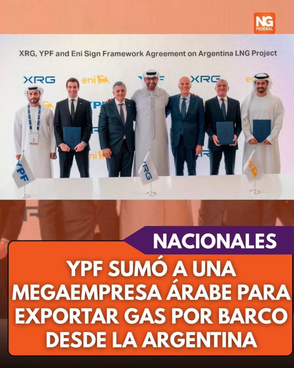 La petrolera YPF firmó un acuerdo con ADNOC, la compañía estatal de Emiratos Árabes Unidos y cuarta petrolera más grande del mundo, para desarrollar un proyecto de exportación de gas natural licuado (GNL) desde Vaca Muerta.