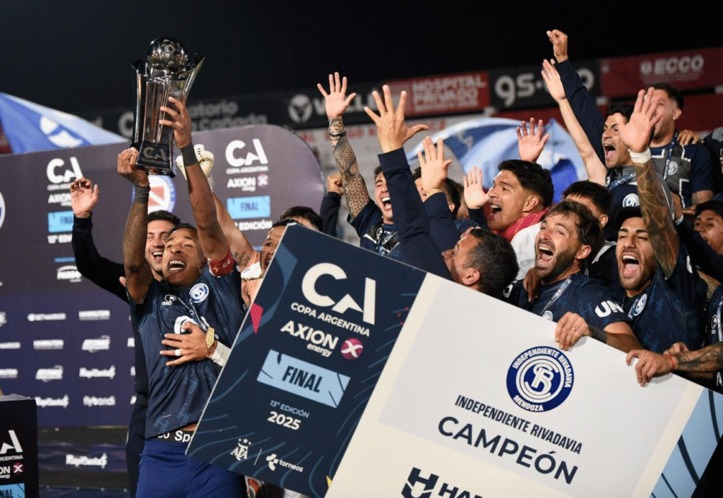 INDEPENDIENTE RIVADAVIA derrotó 5-3 por penales a Argentinos Juniors tras igualar 2-2 en tiempo regular y se coronó campeón de la Copa Argentina. Es el primer título del conjunto mendocino en 112 años de historia, que además se clasificó a la Copa Libertadores, certamen en el que se estrenará en 2026.