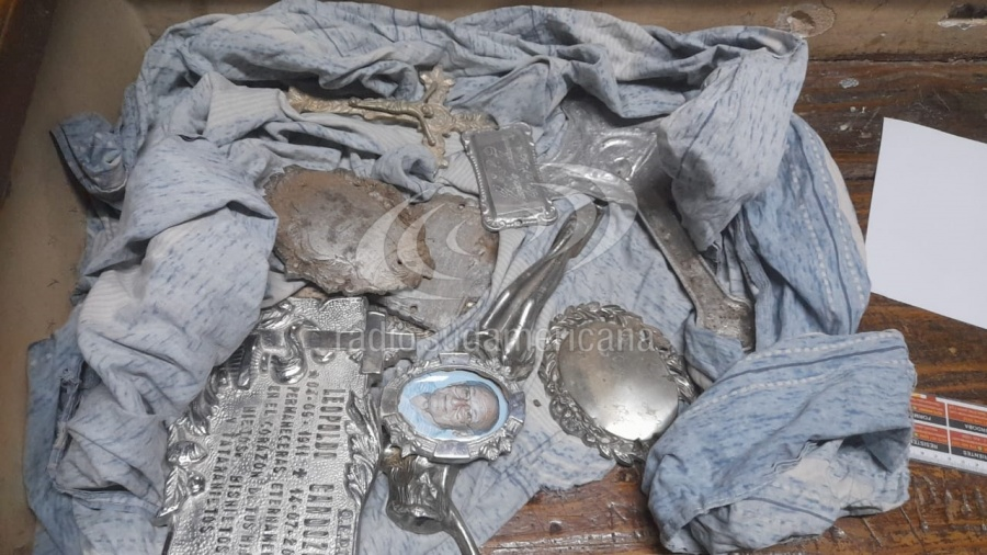 Los elementos encontrados fueron dos marcos de ventana de aluminio y de hierro, tres crucifijos y varias placas.