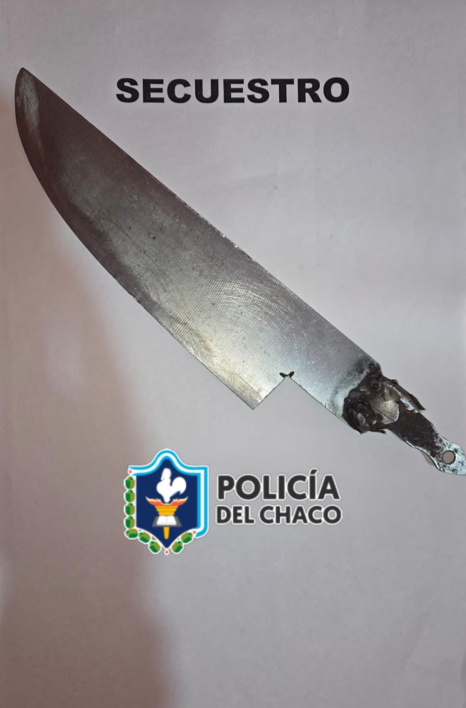 Mientras el escrito judicial se iniciaba por “Supuesta Violación de Domicilio y Lesiones Leves en el Marco de Violencia de Genero”, una patrulla de la unidad llego al lugar y detuvo al involucrado e incauto el arma blanca utilizada para la agresión y amenaza.