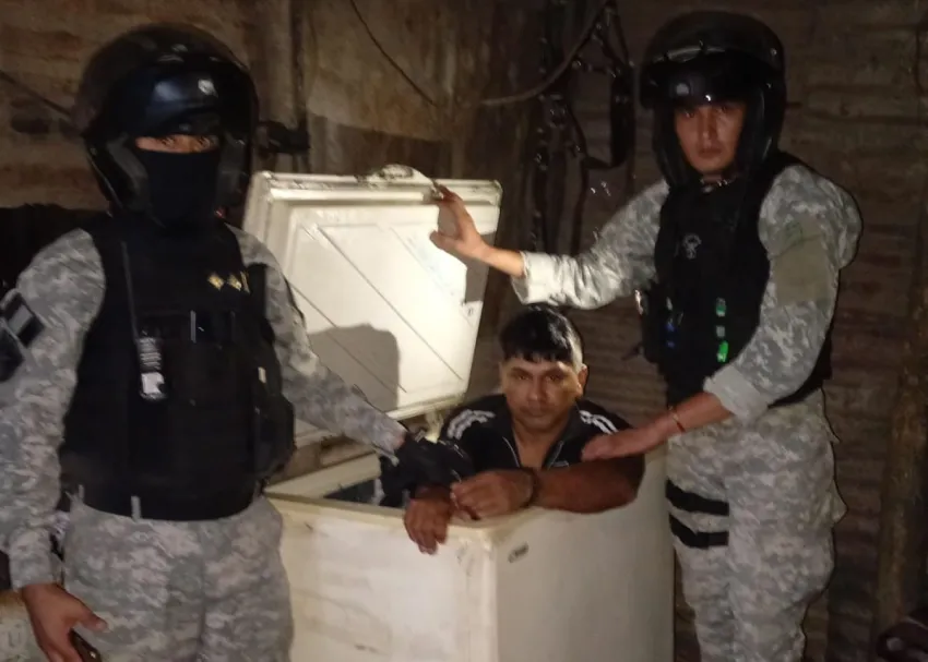 Ante esta información, se conformó un grupo de trabajo del C.O.M. que desplegó un operativo cerrojo, rodeando el área de monte con el objetivo de impedir una nueva fuga. Al inspeccionar el lugar, los efectivos observaron un rancho precario y, al mirar por uno de los orificios de la estructura, detectaron al sospechoso, quien intentó ocultarse ingresando al interior de un freezer y cerrando la puerta.