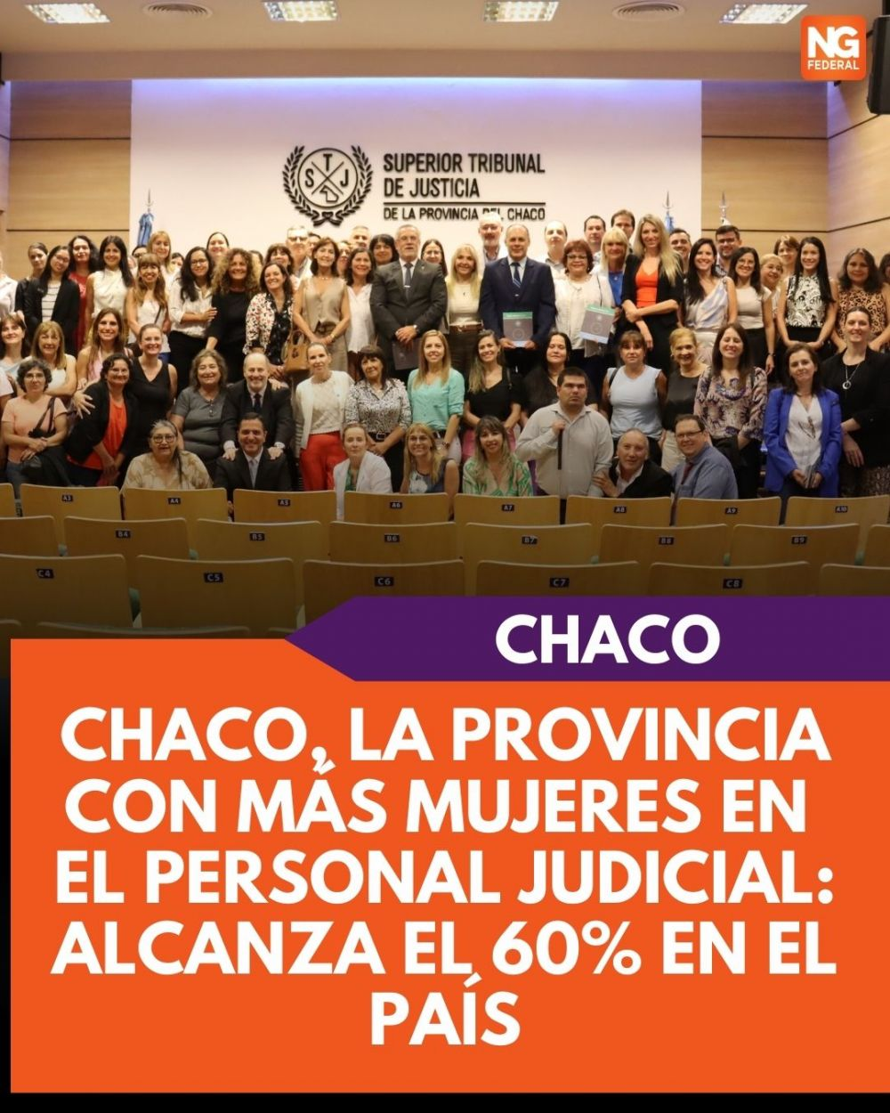 Chaco se ubica en el primer lugar del país en cuanto a presencia femenina en la magistratura judicial. Según el “Mapa de Género de la Justicia Argentina 2025”, elaborado por la Oficina de la Mujer de la Corte Suprema de Justicia de la Nación, el 60% de los cargos de magistratura en la provincia está ocupado por mujeres, mientras que el 40% corresponde a varones. El gráfico difundido por el organismo nacional muestra que la provincia chaqueña lidera ampliamente el ranking entre todas las jurisdicciones. Detrás se ubican distritos como La Rioja con un 57% de mujeres en la magistratura y Formosa y La Pampa con un 56%. La diferencia posiciona a Chaco como la provincia con mayor participación femenina en este nivel del sistema judicial.