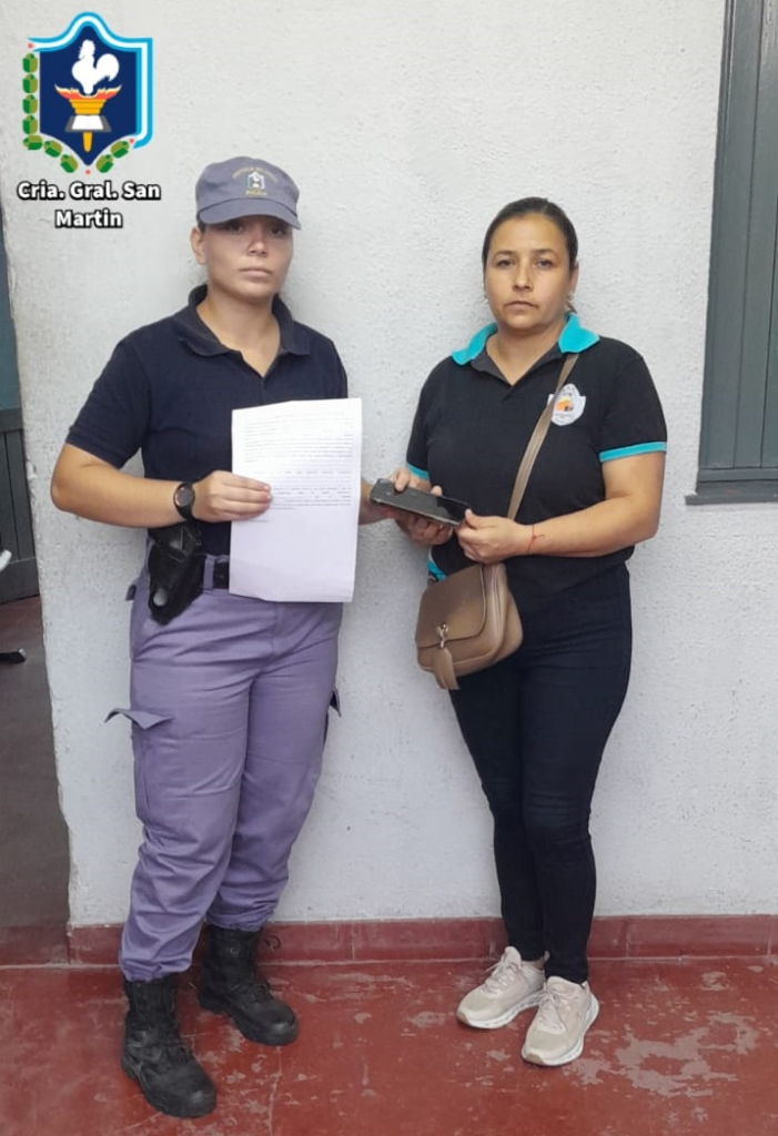 Al realizar el rastrillaje en la zona, la policía halló el teléfono Samsung denunciado. Conforme a las directivas de la Fiscalía de Investigación Penal Nº 2, a cargo de la Dra. Andrea Langellotti, el elemento fue secuestrado y posteriormente restituido a su propietaria previa acreditación. Se continúan las diligencias para dar con el autor del hecho, en la causa caratulada como “Supuesto Hurto”.