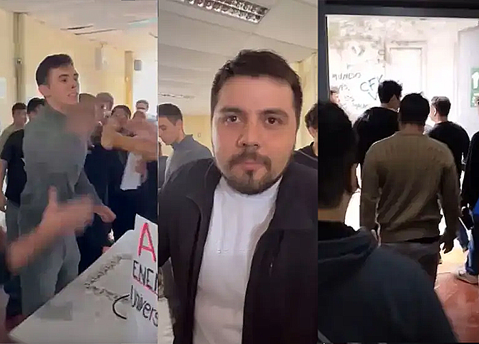Según se observó en registros difundidos en redes sociales, los manifestantes ingresaron al aula y exigieron la salida de los dirigentes, con gritos y cuestionamientos vinculados al recorte de recursos para la universidad pública.