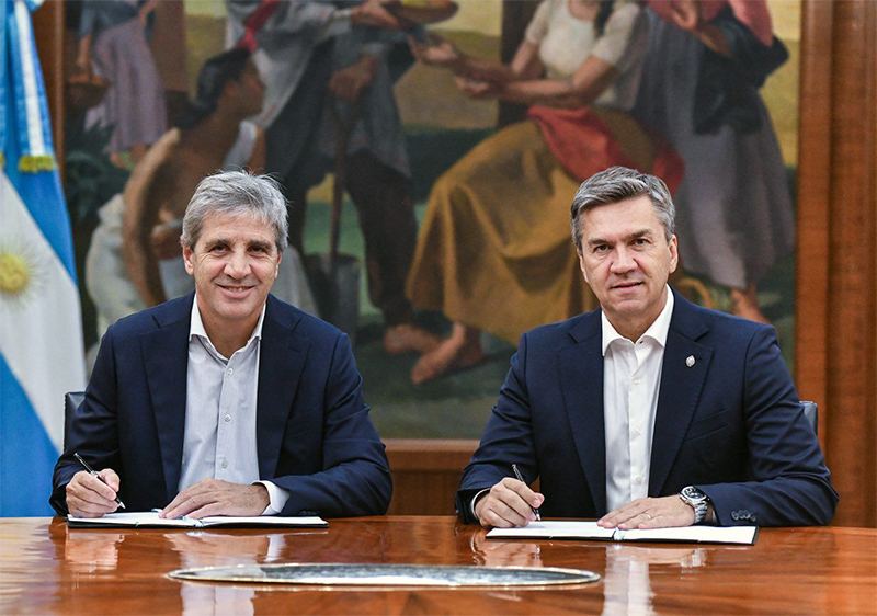 Este miércoles, en Bs. As, el gobernador Leandro Zdero mantuvo un encuentro con el ministro de Economía de la Nación, Luis Caputo, en el que se firmó la contragarantía para el financiamiento otorgado por FONPLATA por un monto de 30 millones de dólares, destinados a obras de infraestructura vial en la provincia.